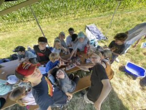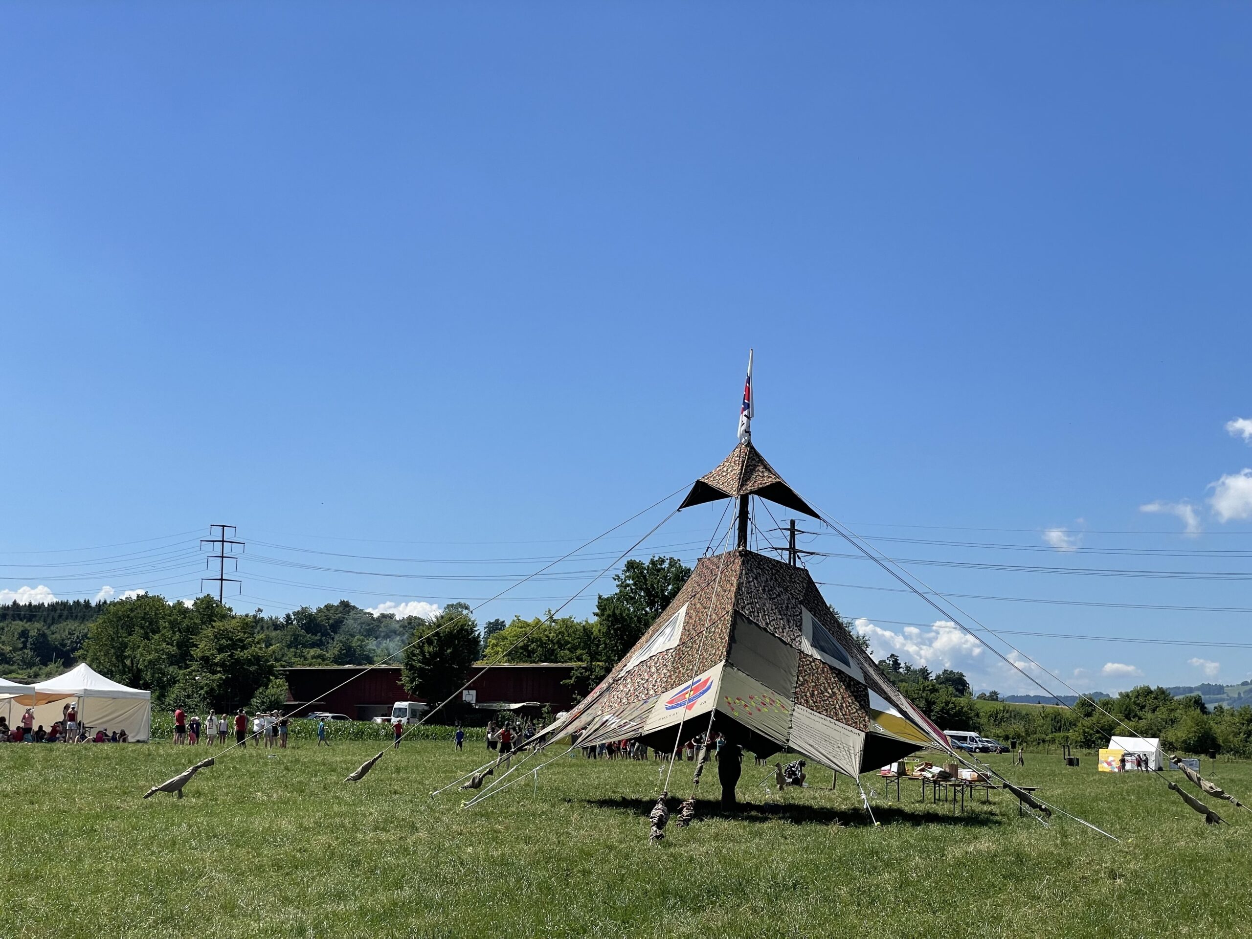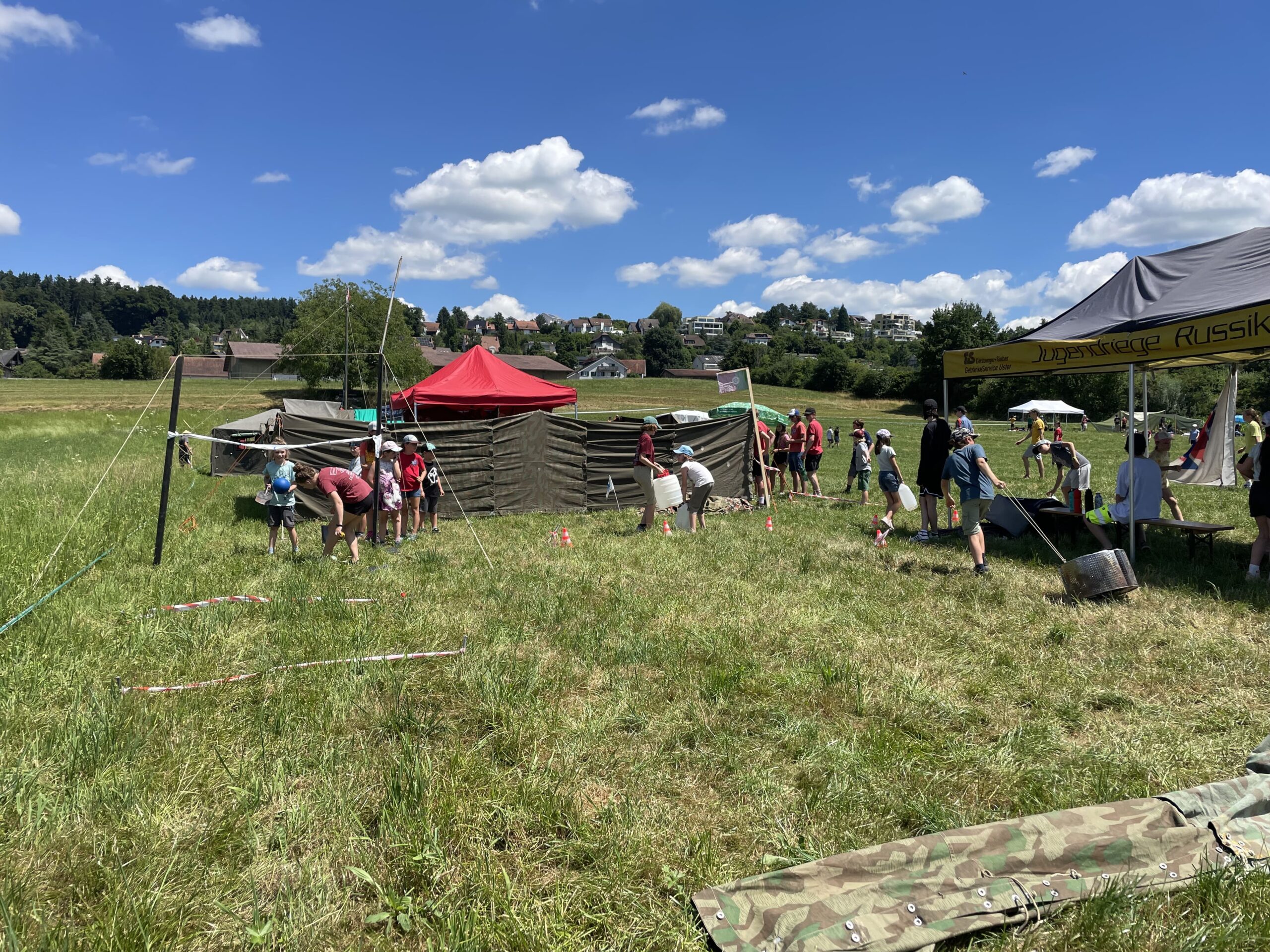 Der Cevi Oberland Trefftag 2025 war ein voller Erfolg! Trotz unglaublicher Sommerhitze konnten wir als Abteilung einen tollen Samstag-Nachmittag mit vielen benachbarten Cevi-Abteilungen geniessen. Für die Leiterinnen und Leiter begann der Trefftag schon einige Tage zuvor mit Helferschichten, um die Aufbauarbeiten voranzutreiben. So entstanden grosse Zelte (Sarasani und Oktagon) sowie auch 4 Brunneninstallationen, ein Küchenzelt für die Verpflegung zum Zvieri und Znacht und sonstige Konstruktionen, die die Kinder am Samstag ausprobieren durften.